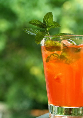 Für 1 Person • 6 cl weißer Rum • 3 cl Limettensaft • 1 bis 2 EL Rohrzucker • Minzblätter • Soda Minzblätter, Rohrzucker und Limettensaft in ein breites Glas geben. Die Zutaten im Glas zerdrücken und mit Soda und weißen Rum auffüllen. Zum dekorieren nimmt man Minzblätter. |